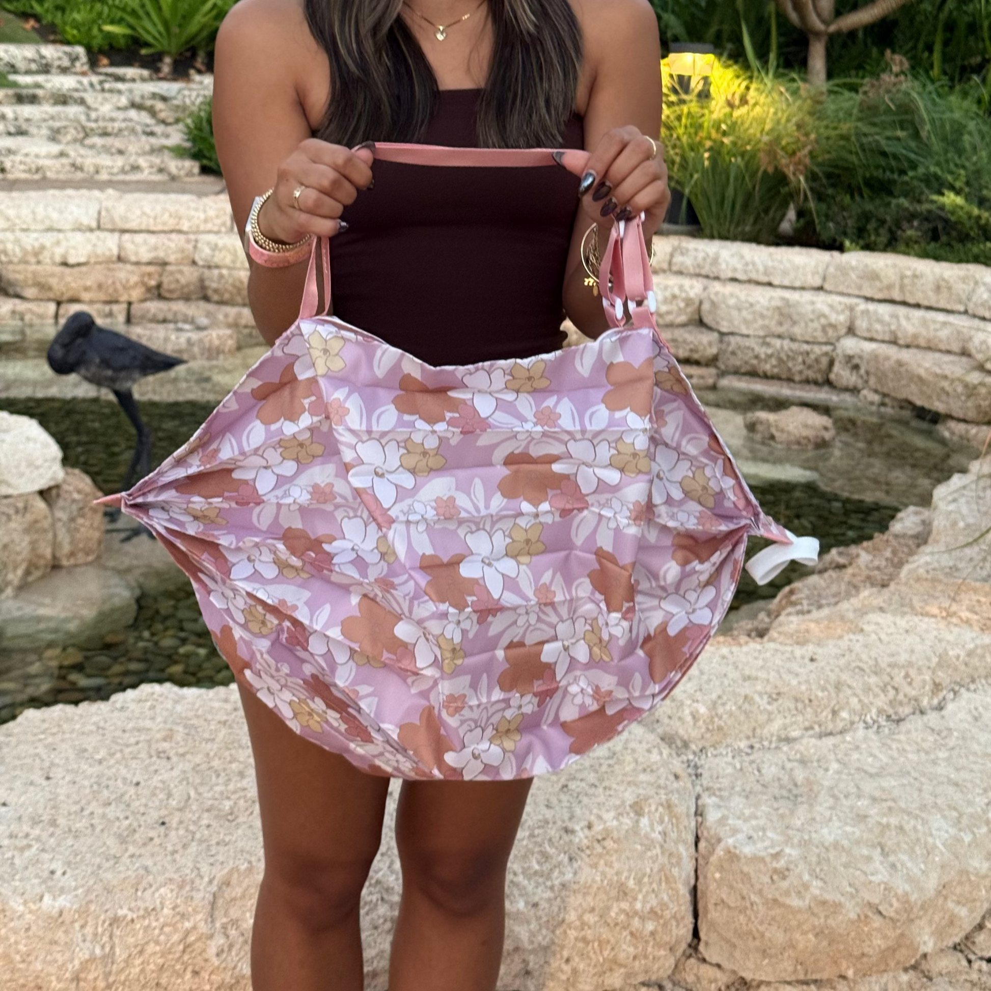 Inspired by Japanese Shupatto bags, our Shappa adds a local twist with a zippered closure, adjustable straps, and a roomy design (24”W x 12”H x 12”D). Folds in seconds, perfect for everyday use, beach days, or travel.