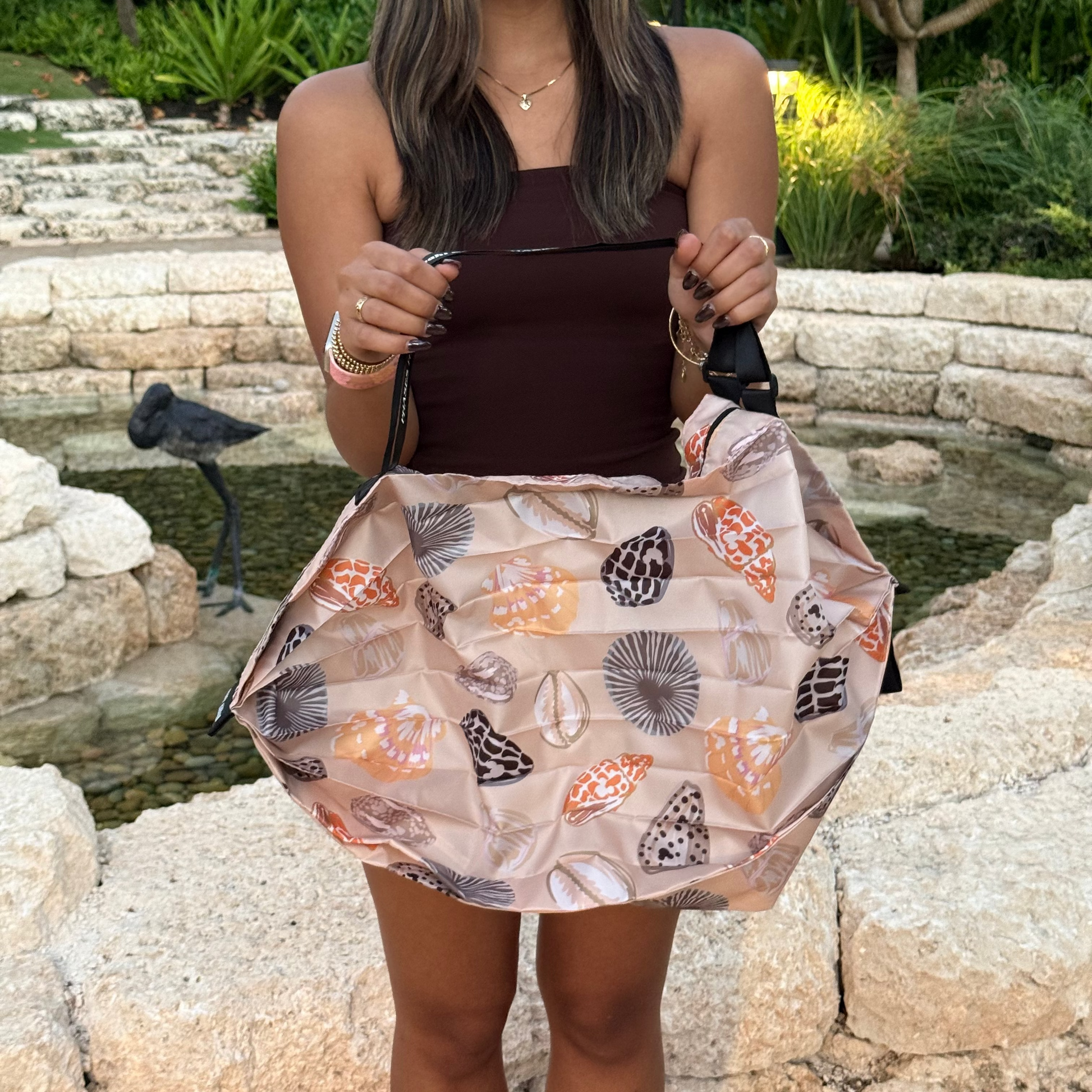 Inspired by Japanese Shupatto bags, our Shappa adds a local twist with a zippered closure, adjustable straps, and a roomy design (24”W x 12”H x 12”D). Folds in seconds, perfect for everyday use, beach days, or travel.